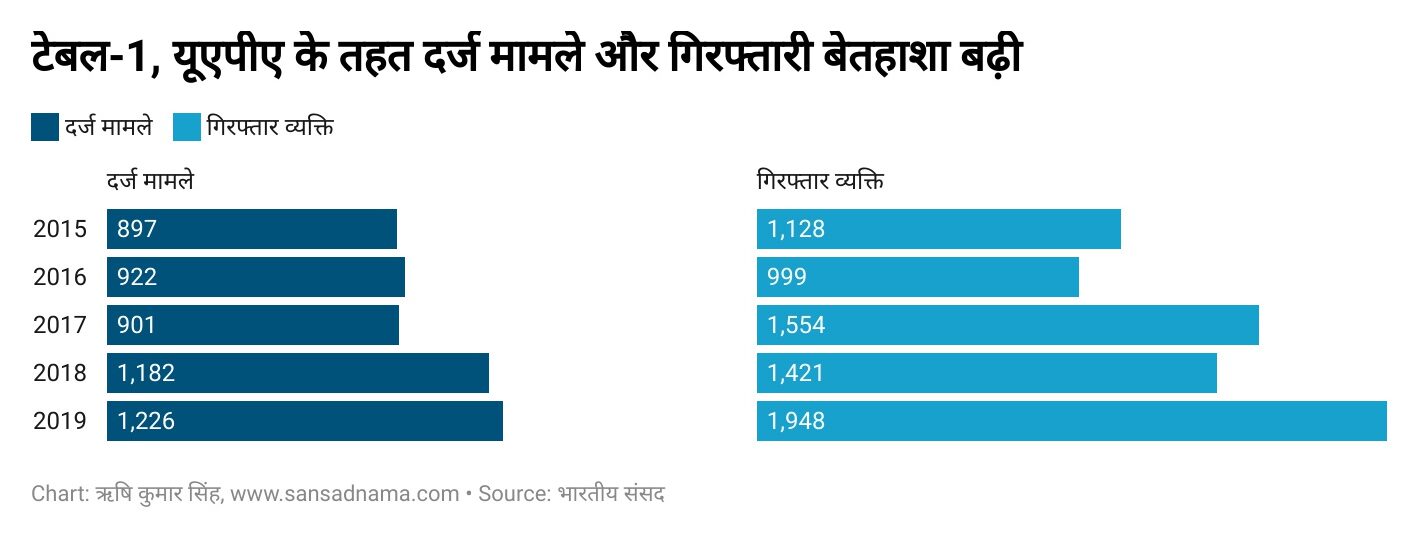 यूएपीए को आतंकवाद रोकने के लिए सख्त कानून के रूप में लाया गया था, लेकिन आज इसका इस्तेमाल जिस तरह से हो रहा है, वह नागरिक अधिकारों को संकट में डालने वाला है. संसद में सवालों के जवाब में सरकार की ओर से बताए गए आंकड़े इस कानून के बेजा इस्तेमाल की तरफ इशारा कर रहे हैं।
